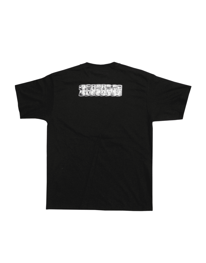Playera blanca con caricaturas y letras old school. Fusión de arte urbano y cultura popular, ideal para los amantes del streetwear mexicano.