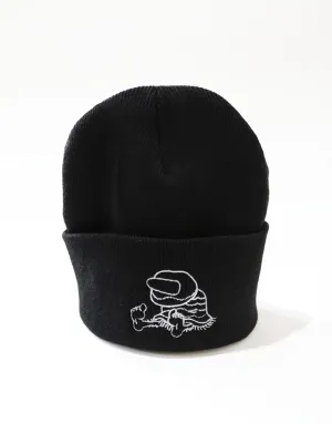Beanie negro con bordado de calavera graffiti. Detalle street y cholo.