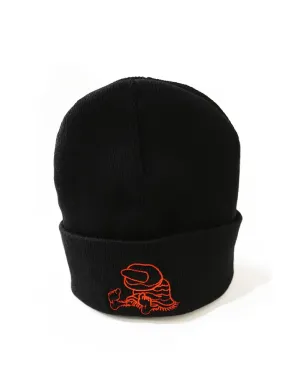 Beanie negro con bordado de calavera naranja. Estilo para el frío y el barrio.