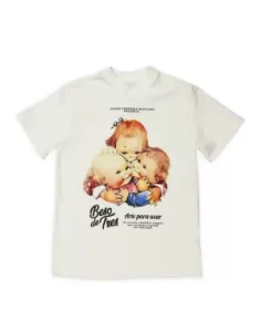 Playera blanca con gráfico de ángel chicano, mezcla de arte clásico y estilo callejero.