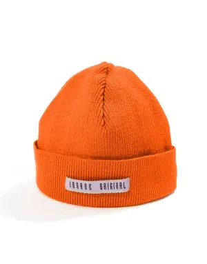 Beanie naranja con etiqueta “Barrio Original”. Dale color a tu outfit.